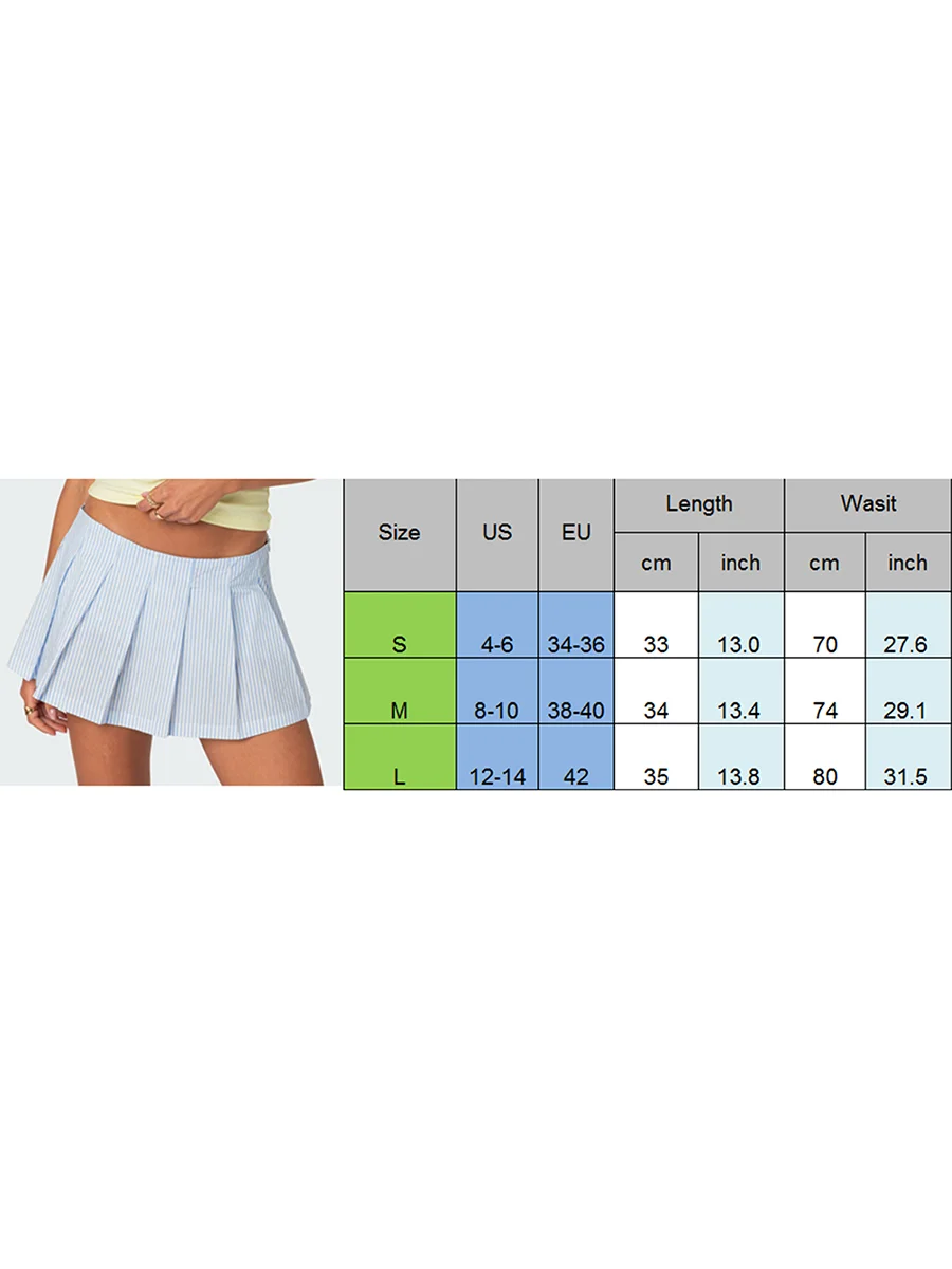 Women's Summer Mini Skirt Blue Pleated Striped Skirt for Daily, Travel, Parties
