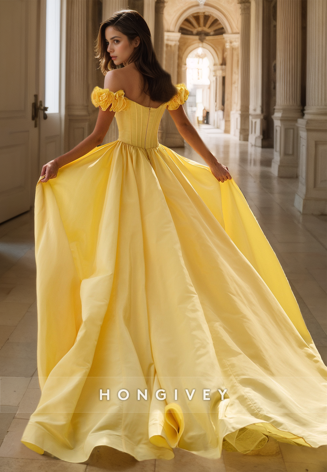 HONGIVEY Off-Shoulder Yellow Evening Dress Elegant 2024 Formal Party Gown with Train