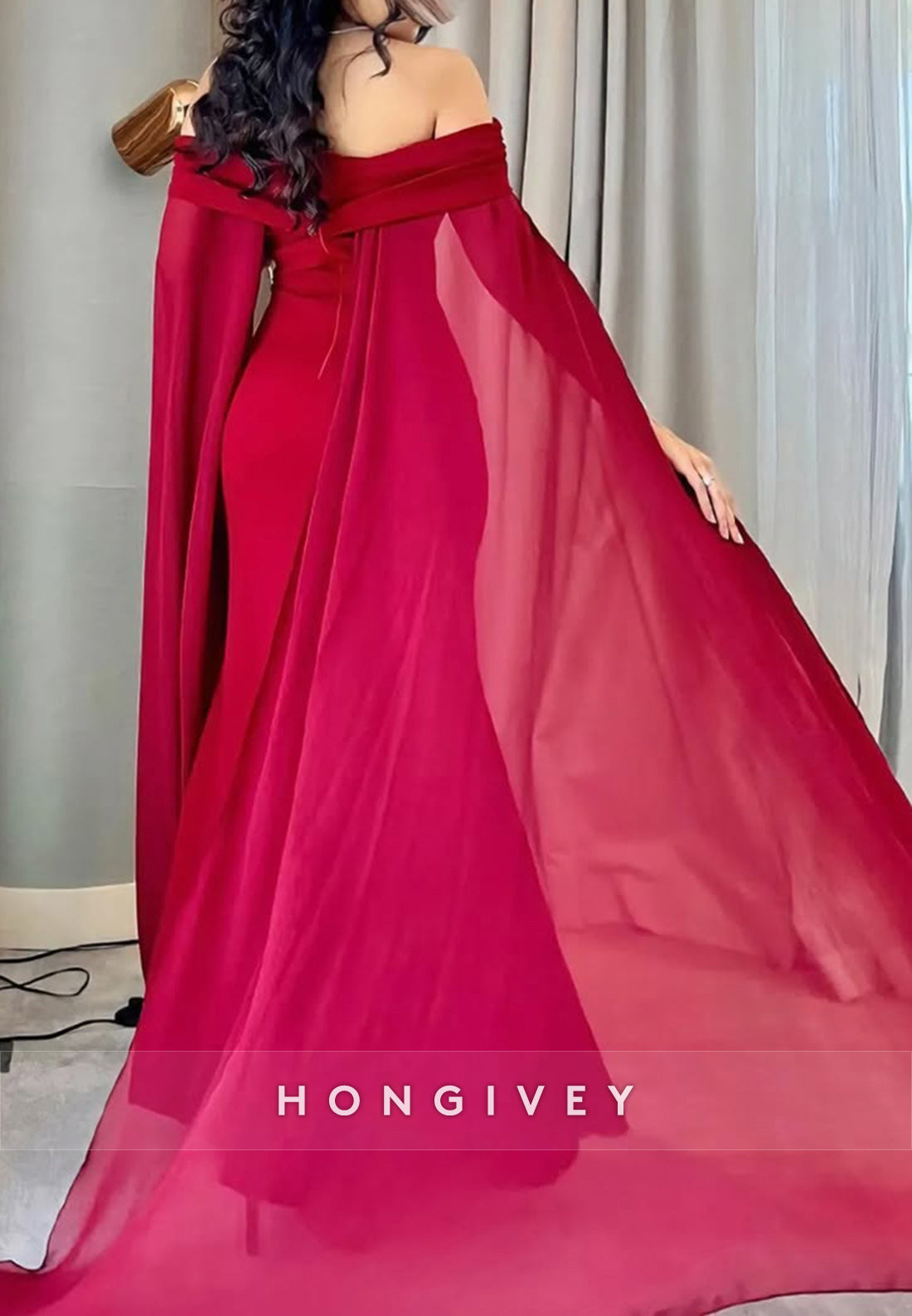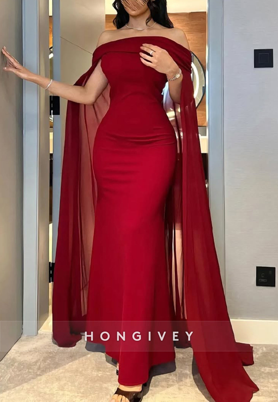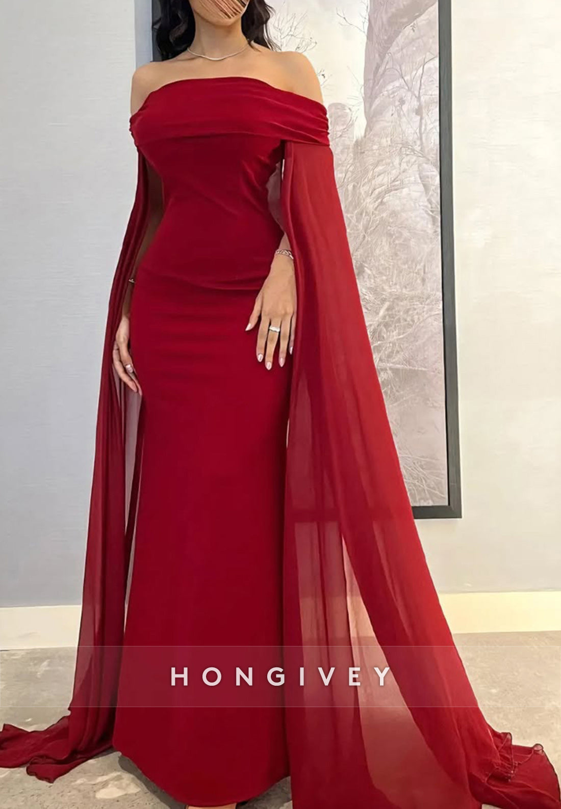 Red Column Off the Shoulder Floor-Length Evening Formal Dresses