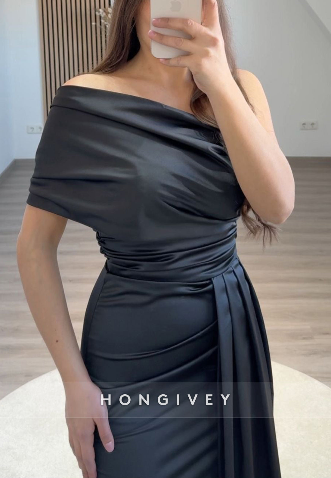 Column One Shoulder Floor-Length Pleated Split Formal Evening Dresses