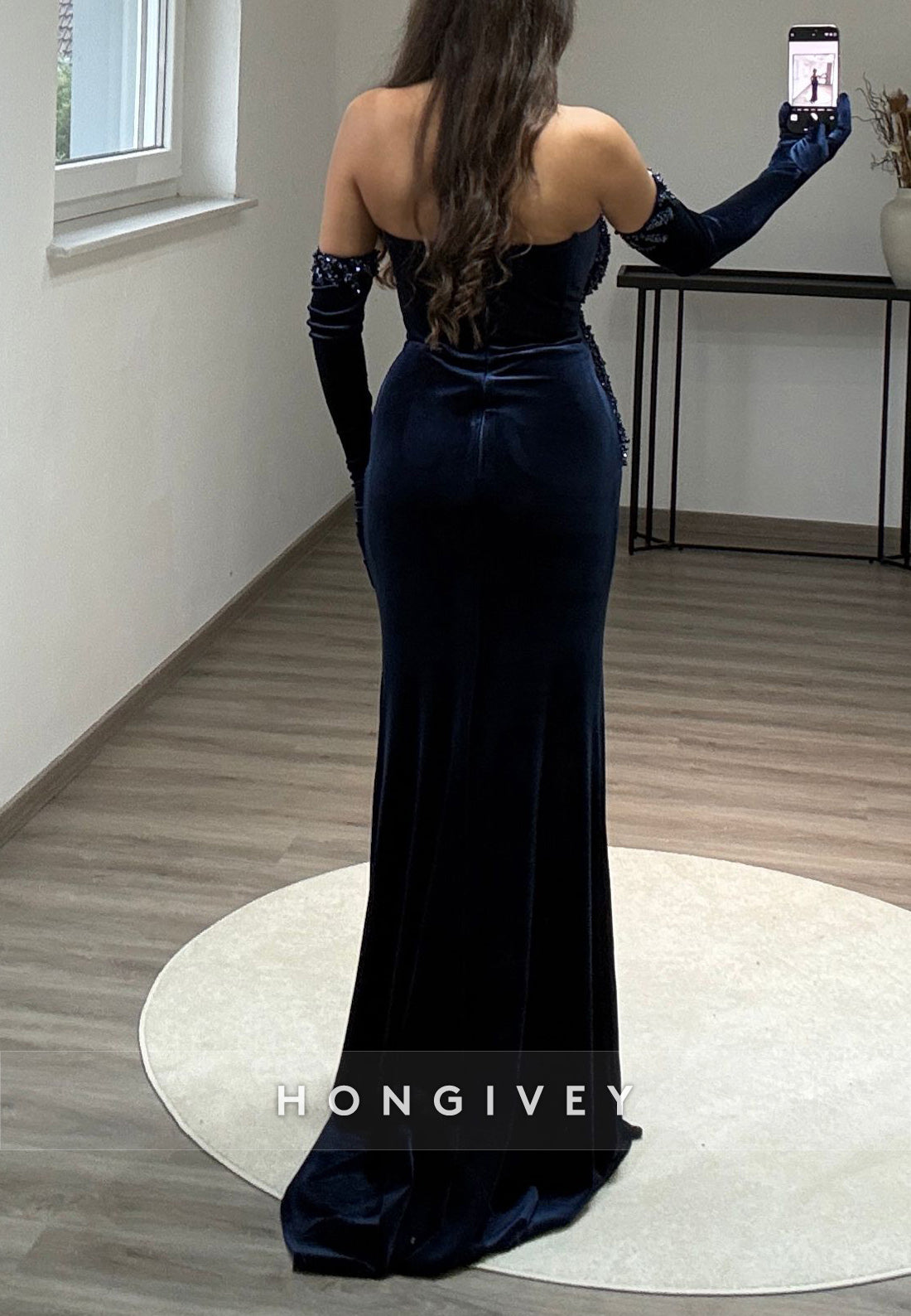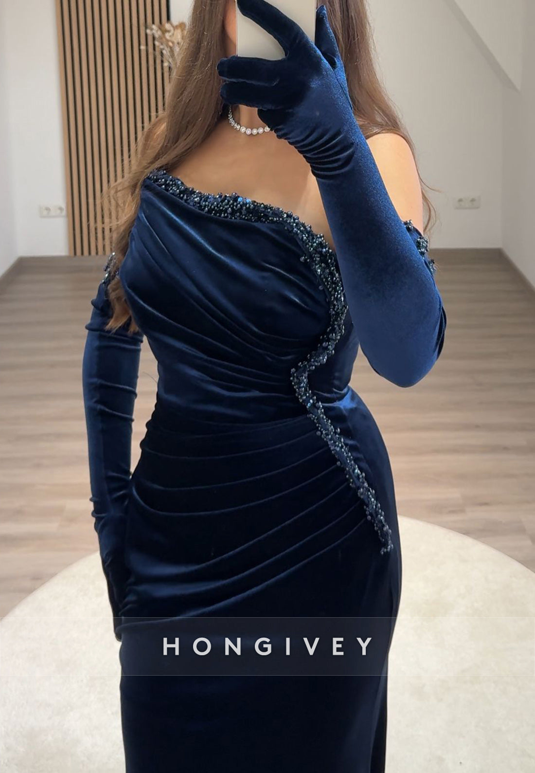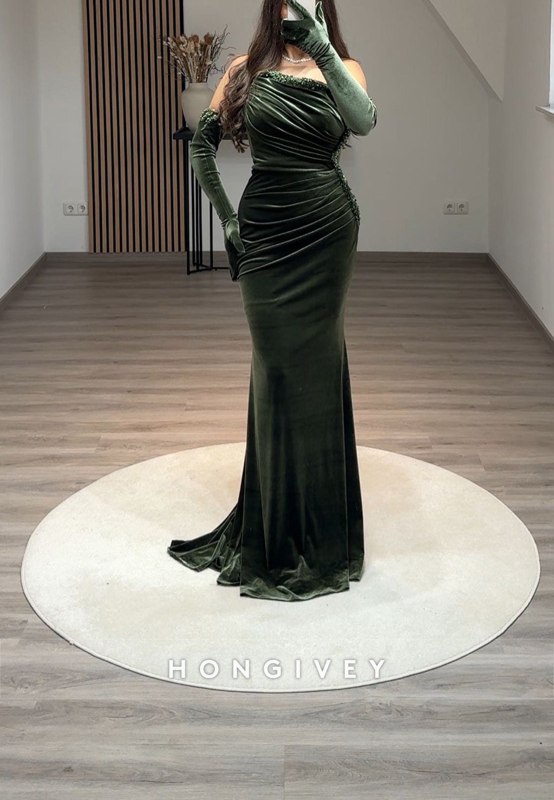 Column Off the Shoulder Pleated Floor-Length Beading Formal Evening Dresses