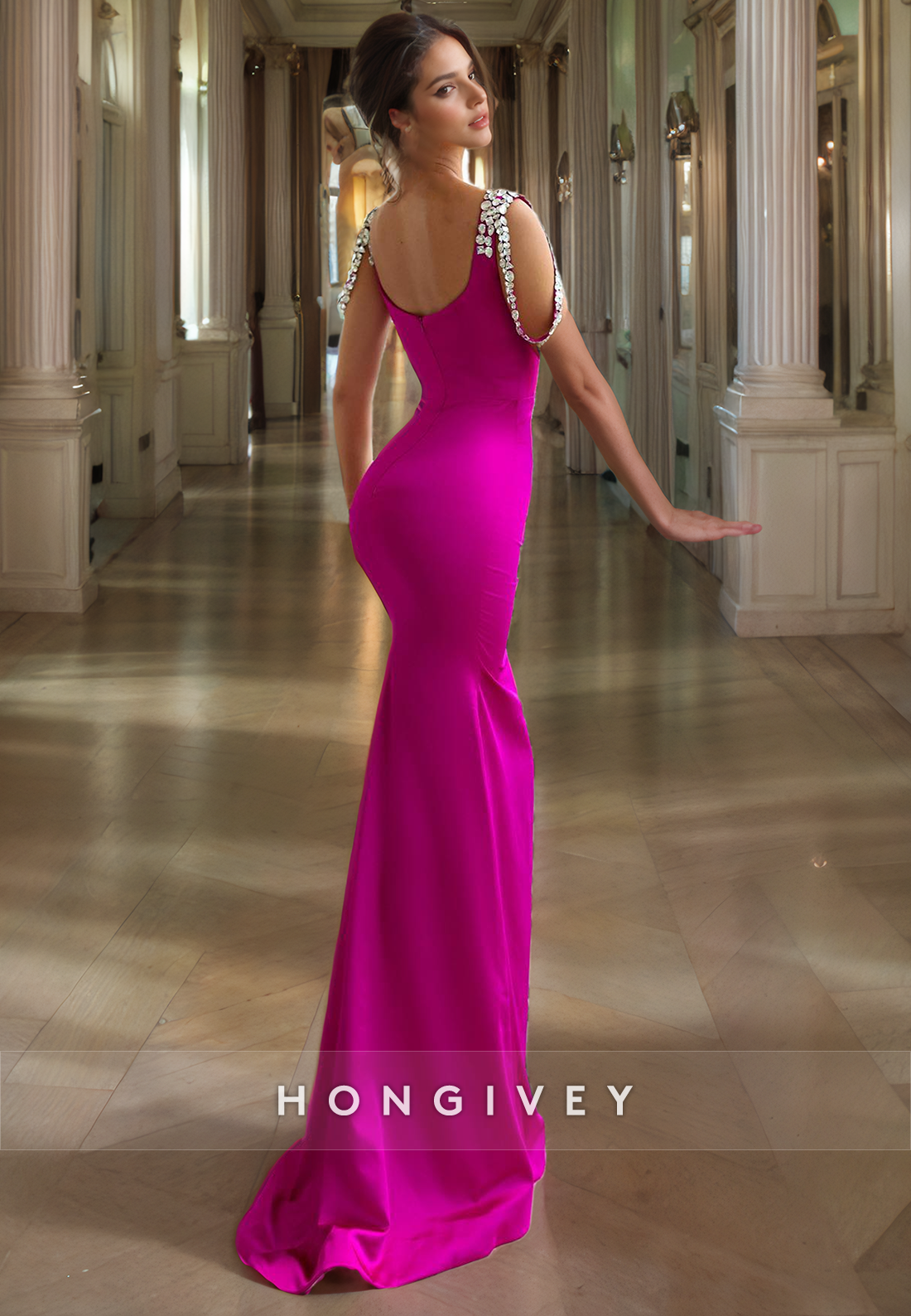 L1527 - Sexy Fitted Satin Square Beaded Spaghetti Straps Empire Party Prom Evening Dress