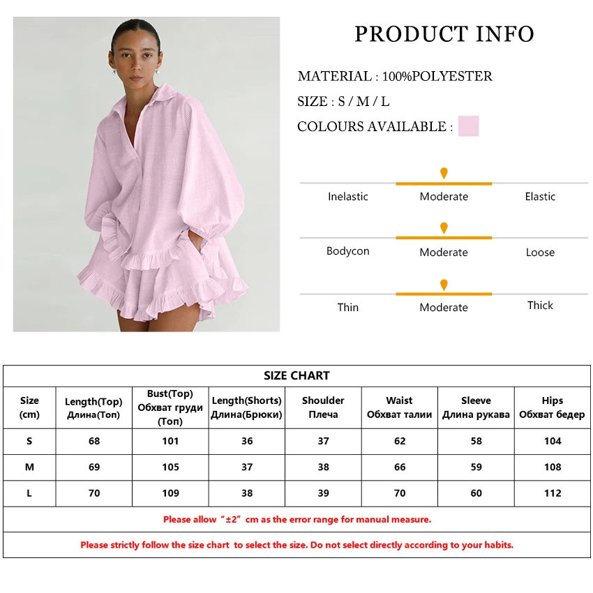 Loose Pink Stripe Ruffle Shorts Two Piece Set