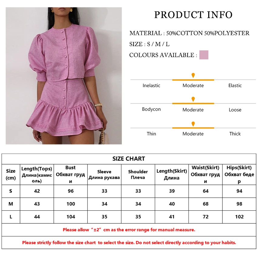 Slim Pink Cotton Crop Top High Waist Mini Skirt Two Piece Set