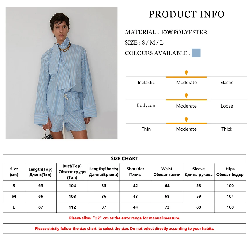 Striped Long Sleeve Collar Shorts Two Piece Set