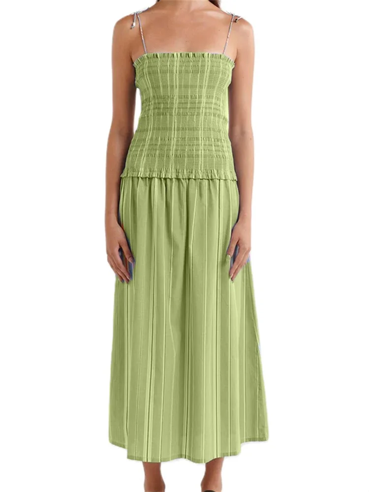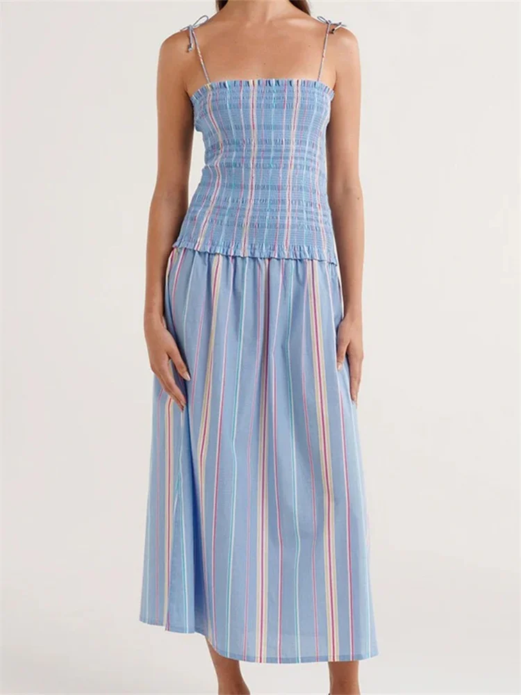 CHRONSTYLE Women Spaghetti Strap Long Dresses Sleeveless Strap Backless Striped Print Patchwork Beach Dress Female Vestidos 2024