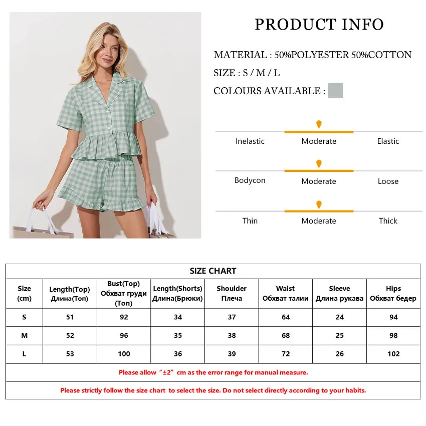 Summer Short Sleeve Pajama Shorts Two Piece Set